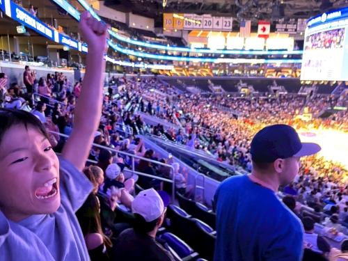 さらに、女子プロバスケチーム「ロサンゼルス・スパークス」のチケットまで用意してくれて、本場の迫力ある試合も観戦できました。息子、夢がかなった瞬間です。