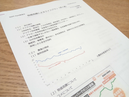 「物価高騰によるライフプラン(食と農)」というテーマのもと、約2時間にわたり、以下のような構成でお話をさせていただきました。